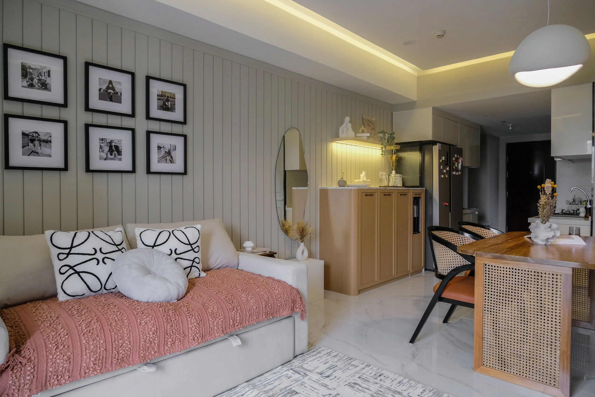 This apartment is envisioned as a contemporary classic home, softened by a transitional approach that bridges timeless detailing with modern living. The interior balances familiarity and freshness, creating a space that feels both elegant and approachable for everyday life.