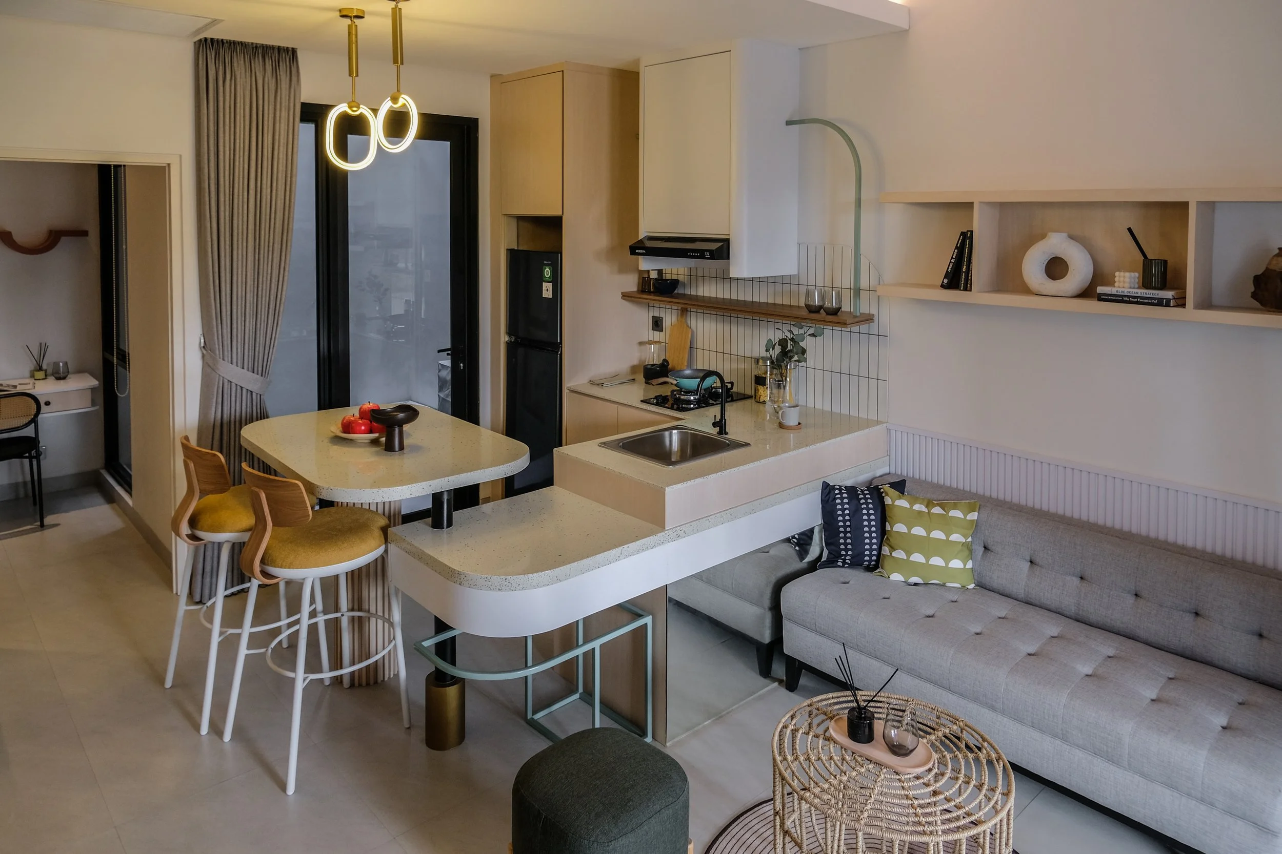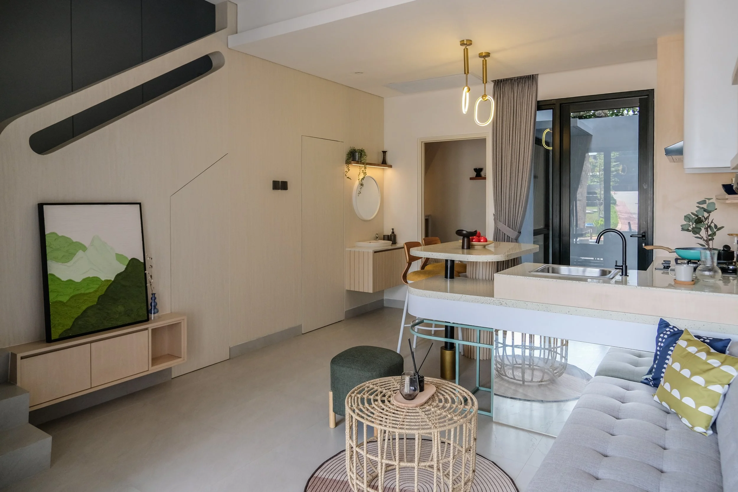 Conceived as a contemporary show unit for a young couple or small family, this home demonstrates how thoughtful design can elevate compact living. An open-plan layout seamlessly merges living, kitchen, and dining areas, allowing the space to breathe while encouraging everyday interaction. Clear sightlines and a restrained material palette enhance the sense of openness, making the interior feel larger than its footprint suggests.